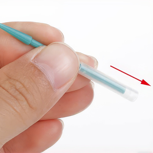 3. Com a ponta arredondada da haste e o tubo transparente, apanhe uma cápsula.